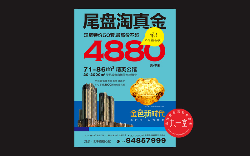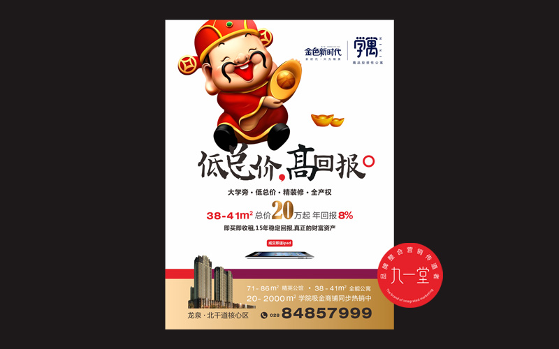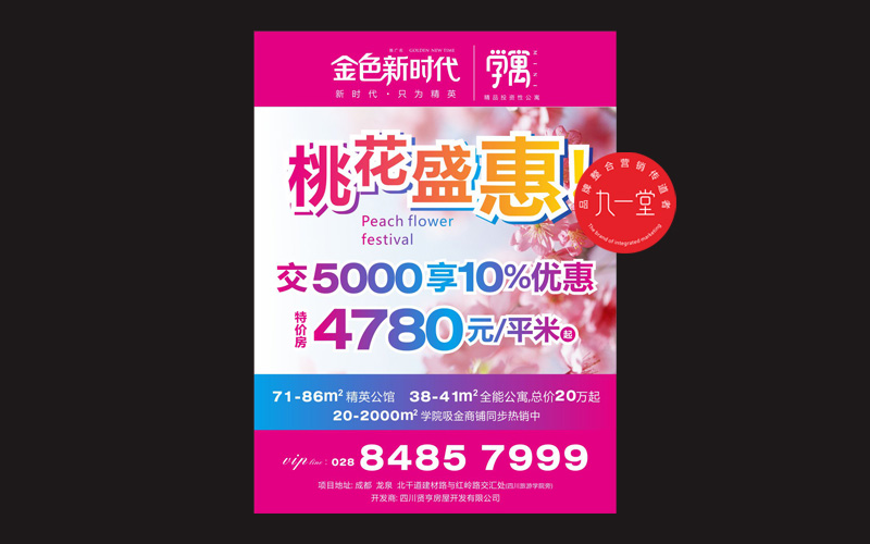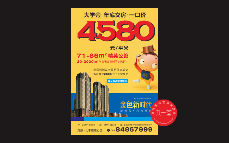 金色新时代位于龙泉驿建材路与红玲路交汇处(旅游学院旁),项目总占地面积约15000平米,总建筑面积约63000万平米,总户数450户左右。整个项目由1号楼和2号楼组成,同旅院为一个整体,可享600亩学院资源的,有AAA级旅游景区,有大面积绿色配套和完善的休闲设施、运动设施(如游泳池、羽毛球场、网球场、篮球场、足球场,高尔夫球场等)。